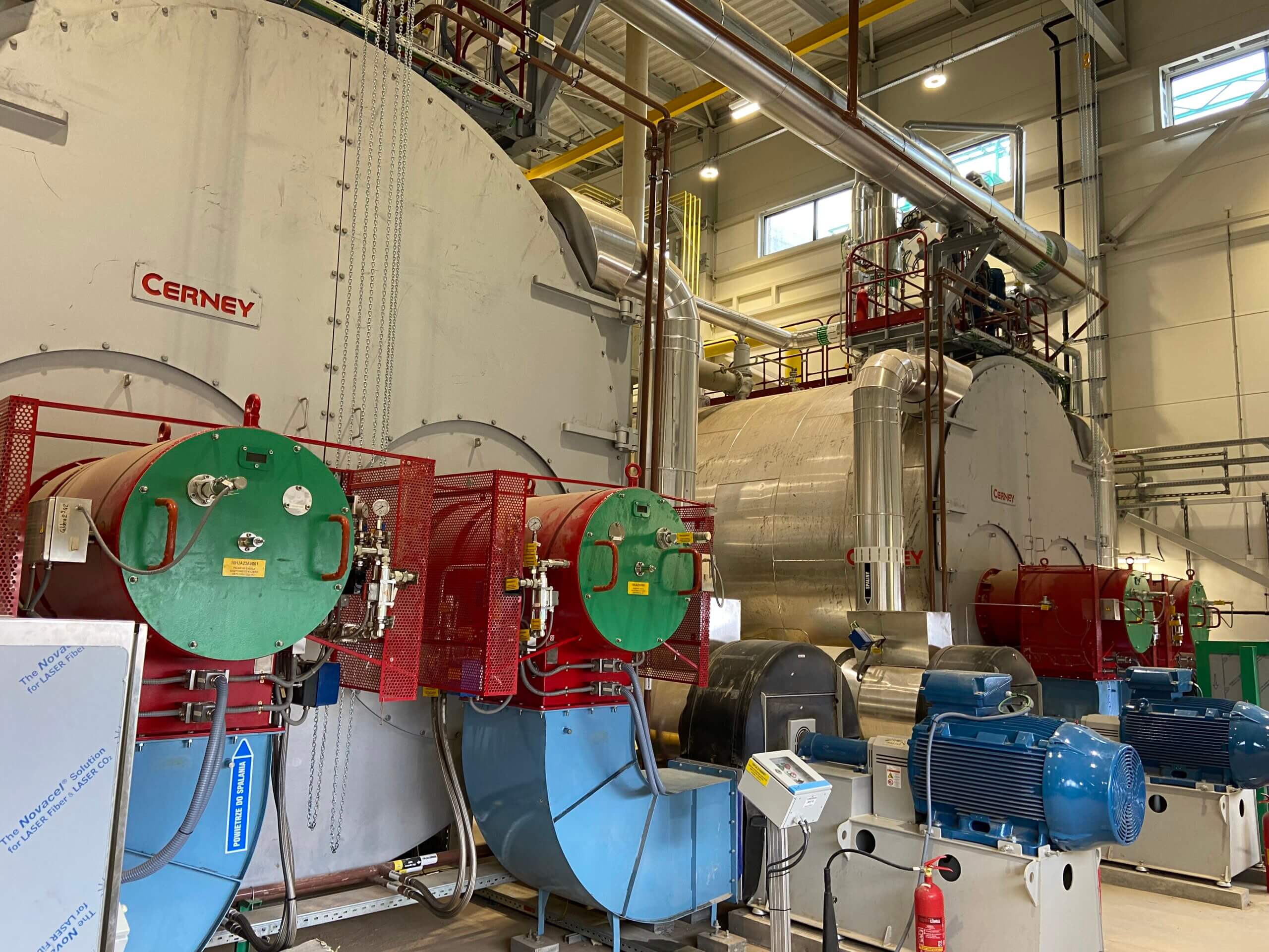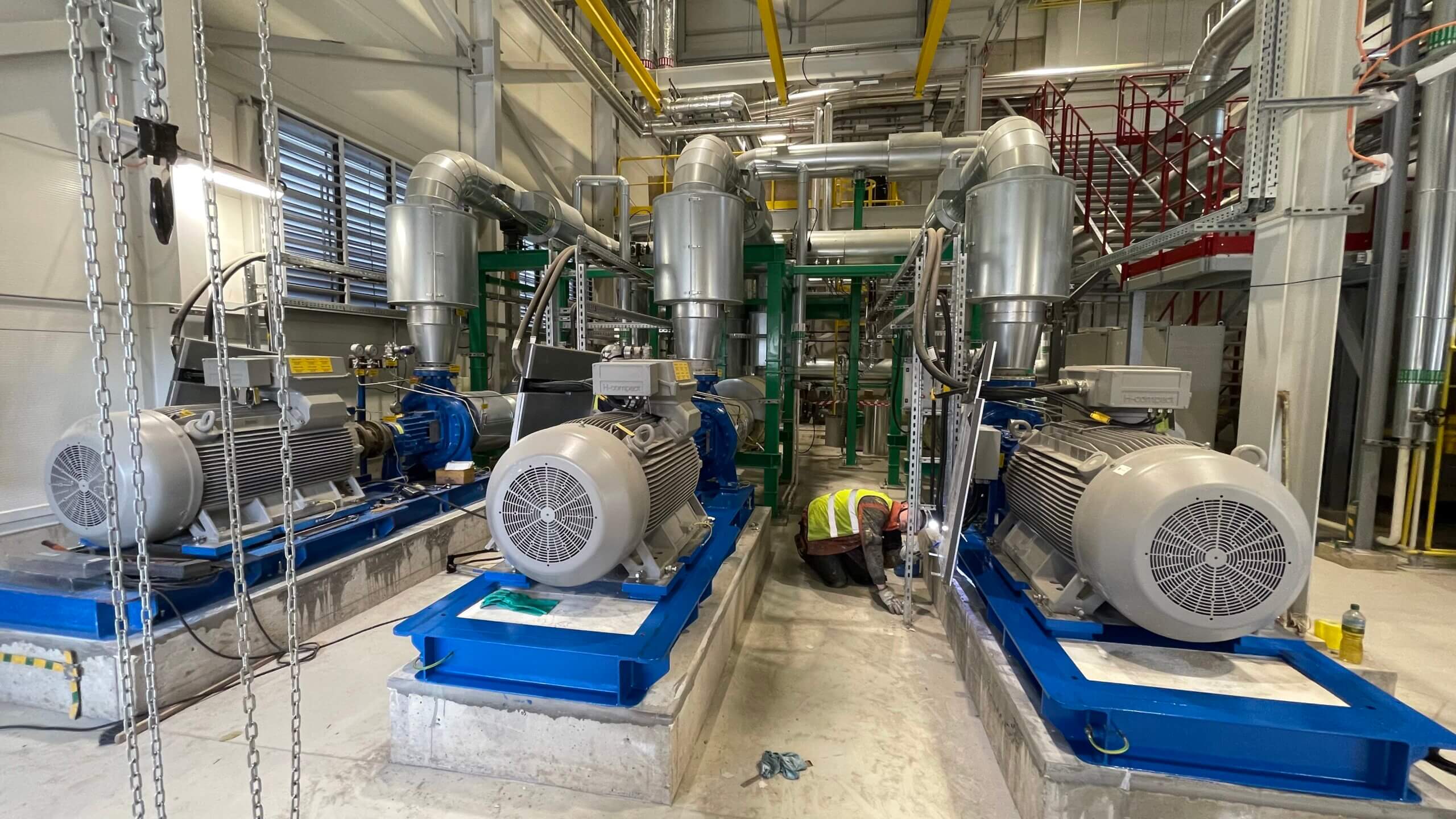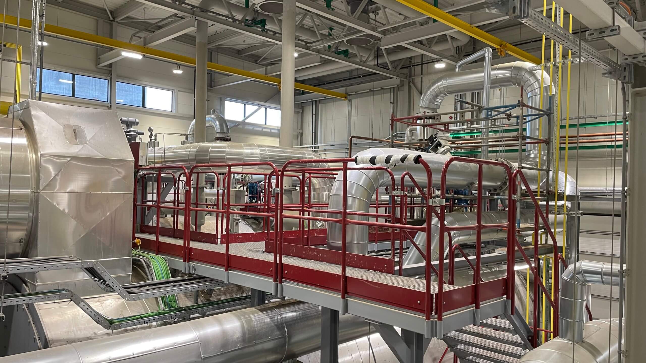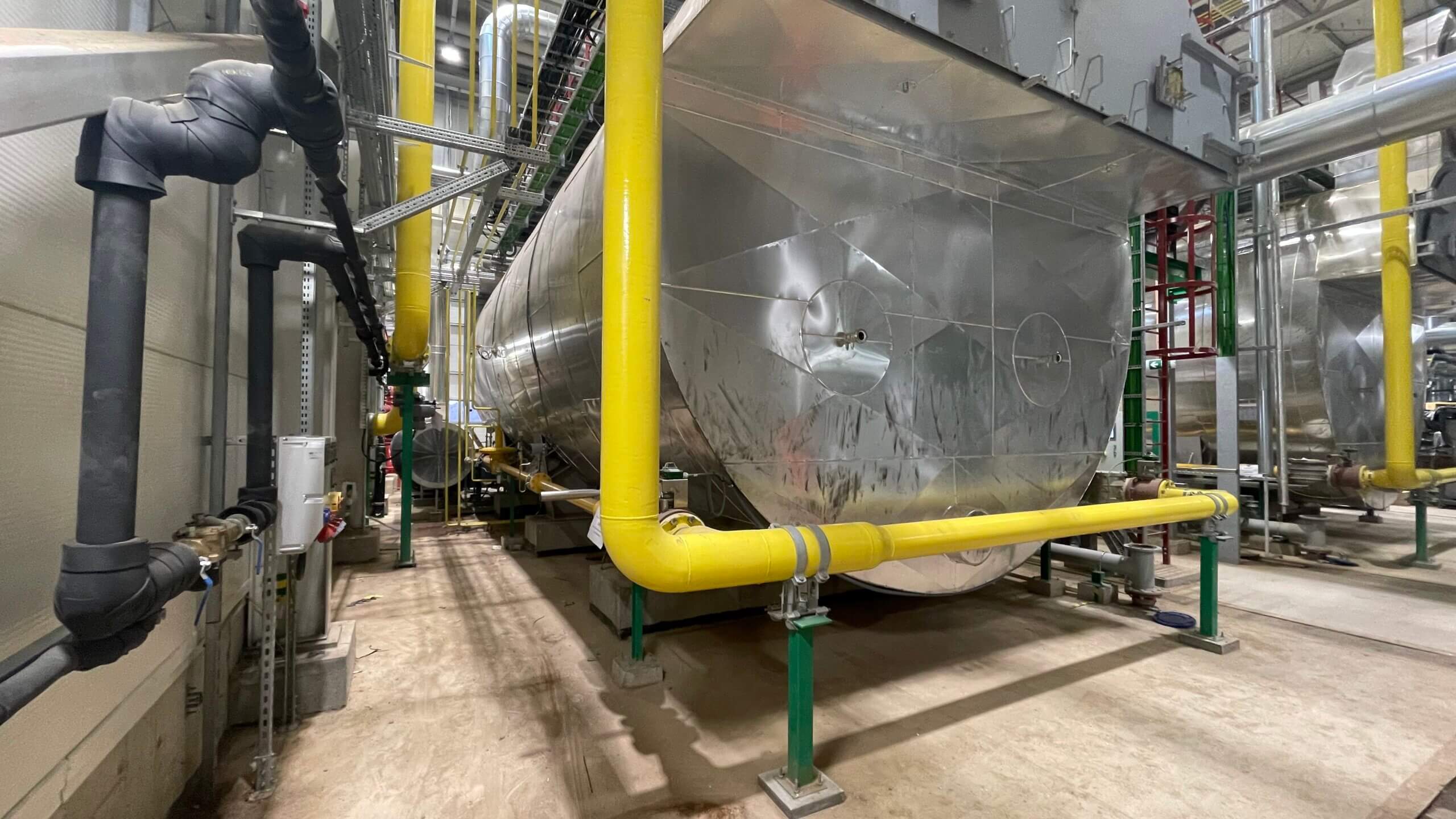 Elementy produkcji ciepła dla Miejskiej Sieci Ciepłowniczej, czyli wymiennik ciepłowniczy podczas instalacji w budynku maszynowni.