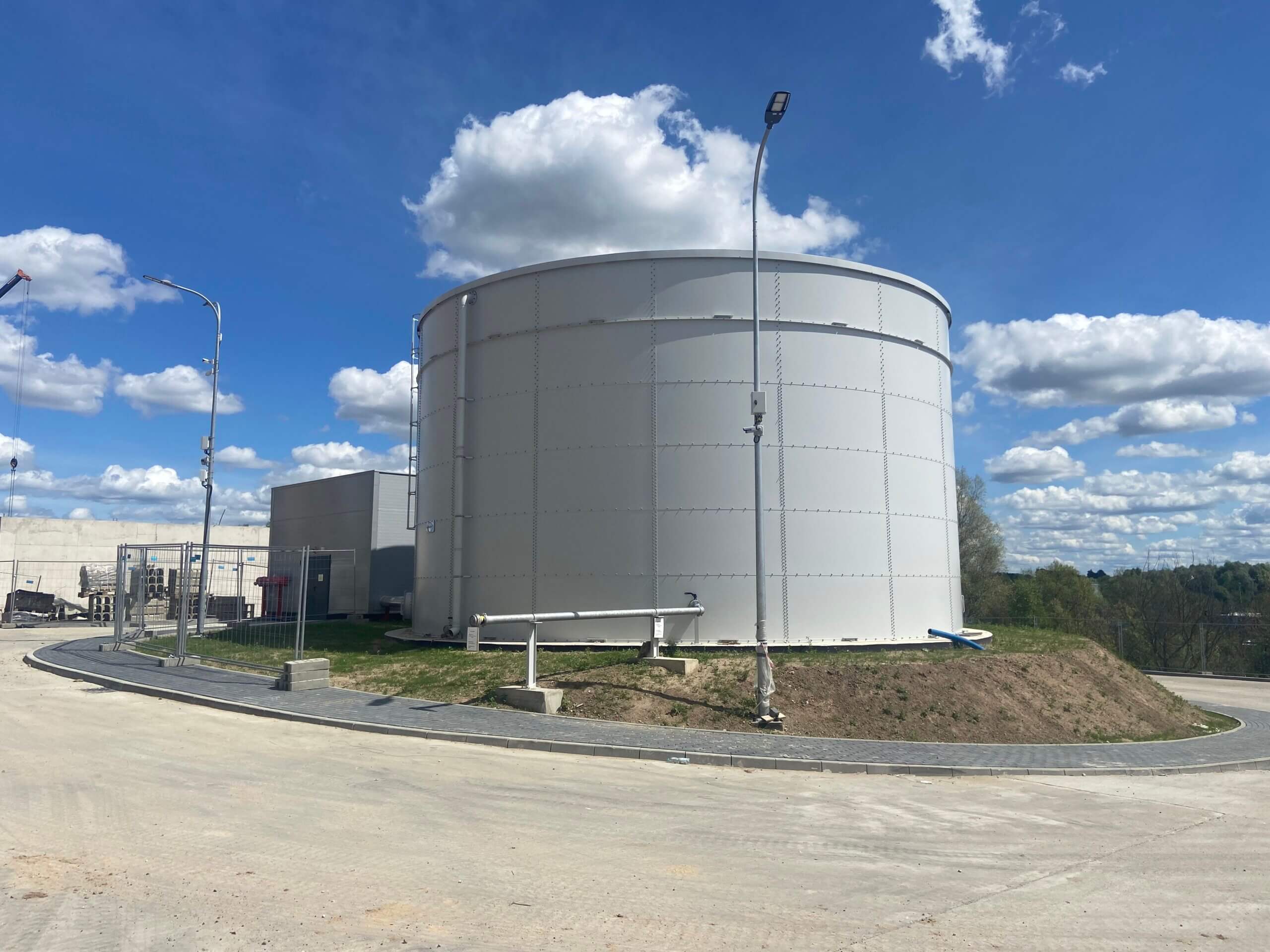 W tle zbiorniki z zapasem lekkiego oleju opałowego dla dwóch kotłów Kotłowni Szczytowej oraz dla palników rozruchowych kotła ITPO. Lekki olej opałowy, poza gazem ziemnym, jest jednym z dwóch paliw, które będzie wykorzystywane do produkcji ciepła z Kotłowni Szczytowej. Na pierwszym planie widoczne jest miejsce podłączenia systemu wytwarzania piany gaśniczej w celu ochrony tych zbiorników.