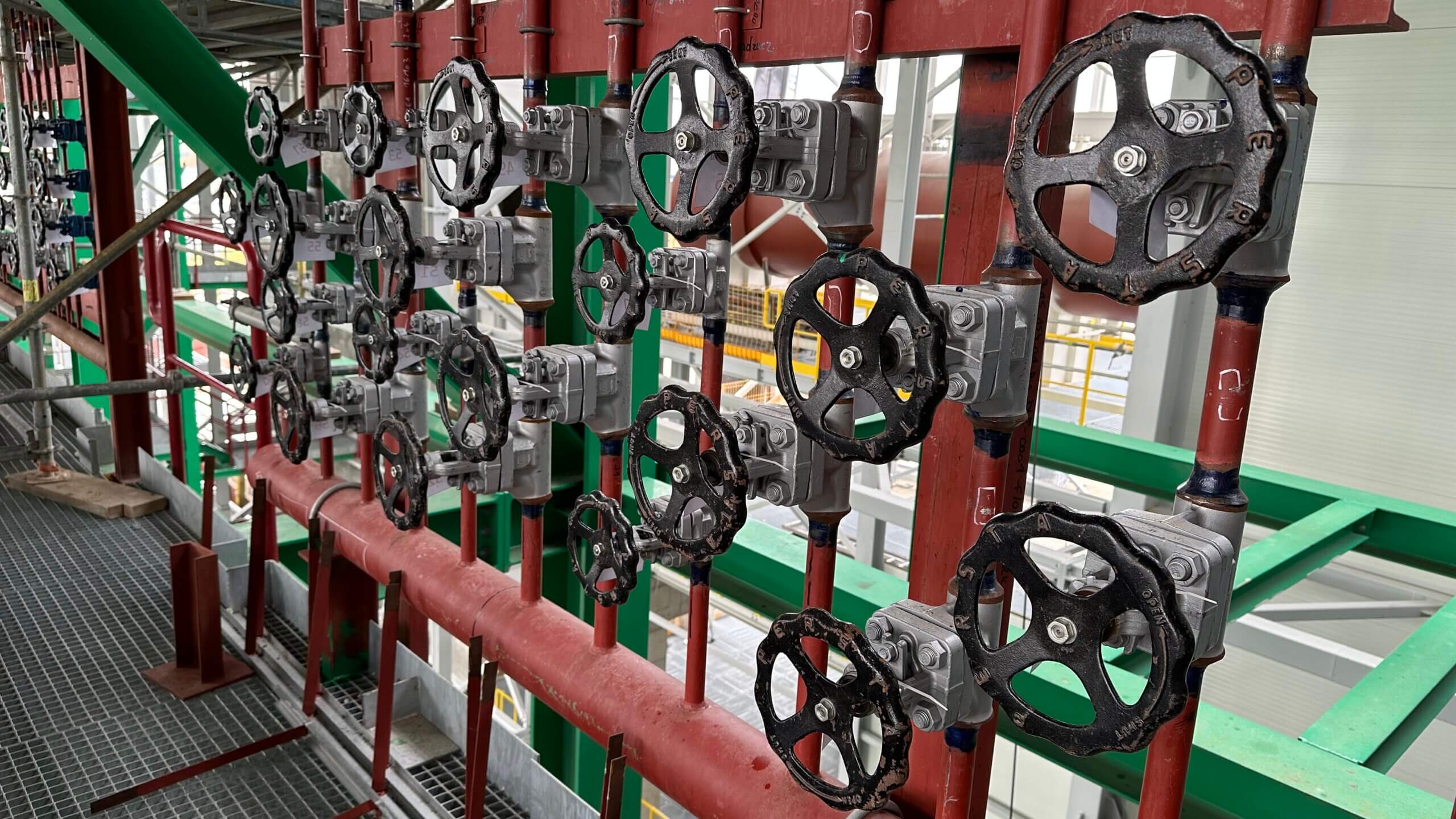 Zestaw zaworów służących do odpowietrzenia części parowej kotła ITPO. Podczas uruchamiania kotła ważnym jest usunięcie powietrza z części, w której będzie znajdować się para przed przekazaniem jej do dalszych części instalacji.
