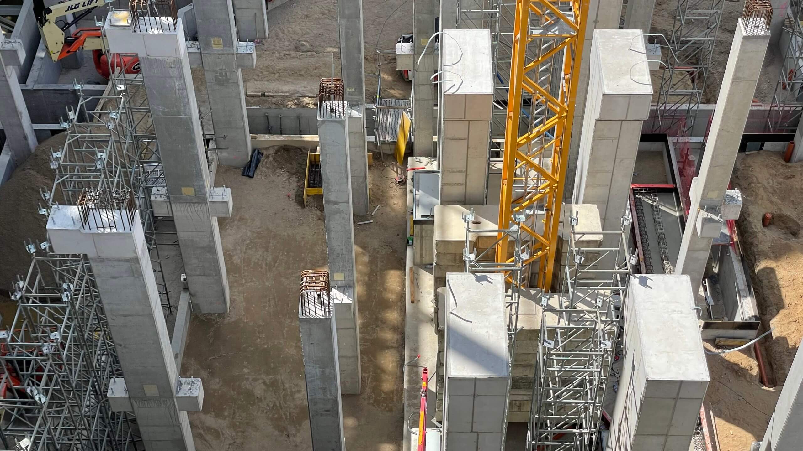 Budowa ITPO. Widoczny proces montażu belek podsuwnicowych w przestrzeni bunkra na odpady (paliwo dla kotła ITPO). Na tych belkach będą zainstalowane szyny, po których będą się poruszać suwnice zasilające kocioł ITPO w paliwo.