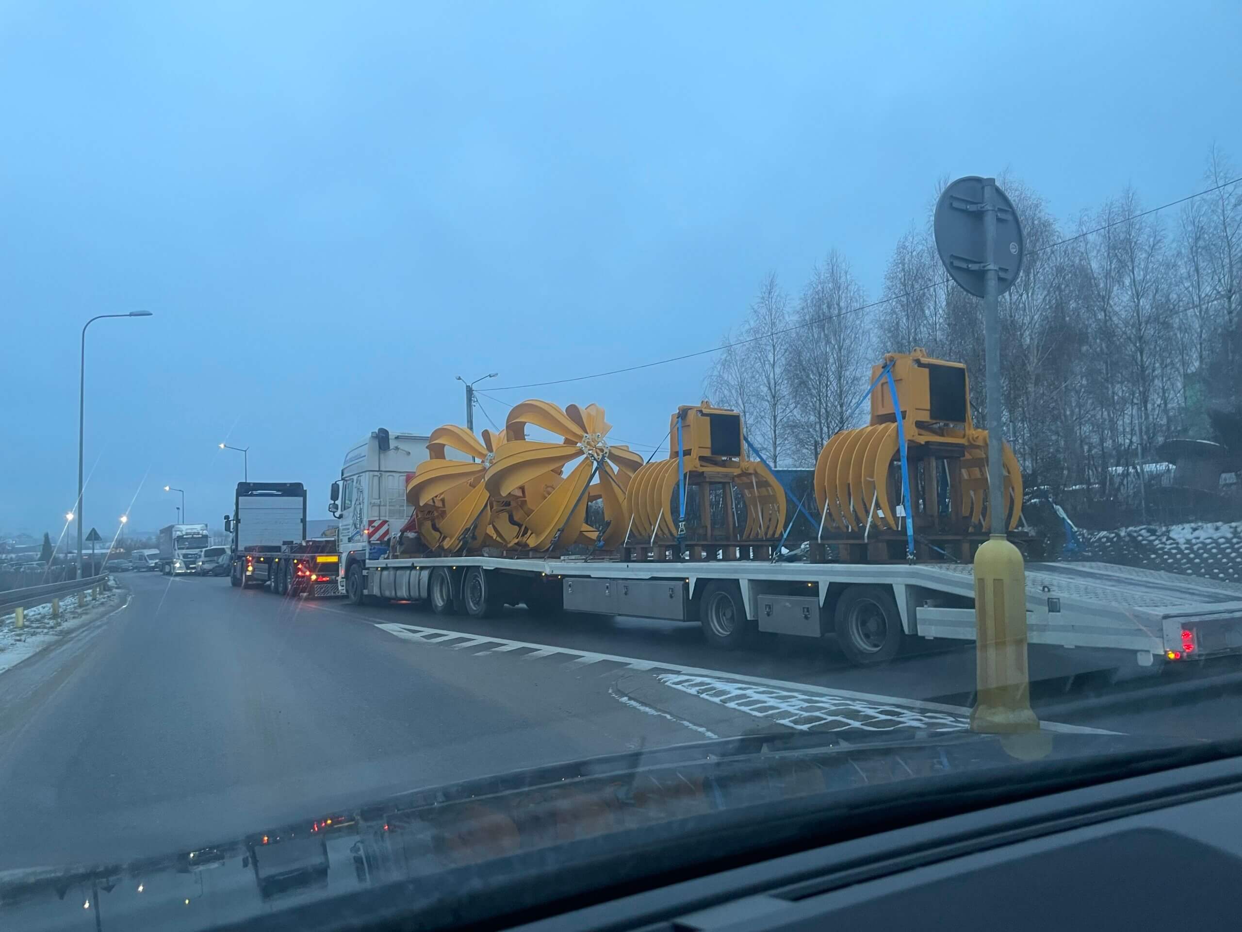 Budowa ITPO – Dostawa wyposażenia suwnic odpadów. Na zdjęciu widoczne są chwytaki główne i pomocnicze, będą one stale podłączone do suwnic.