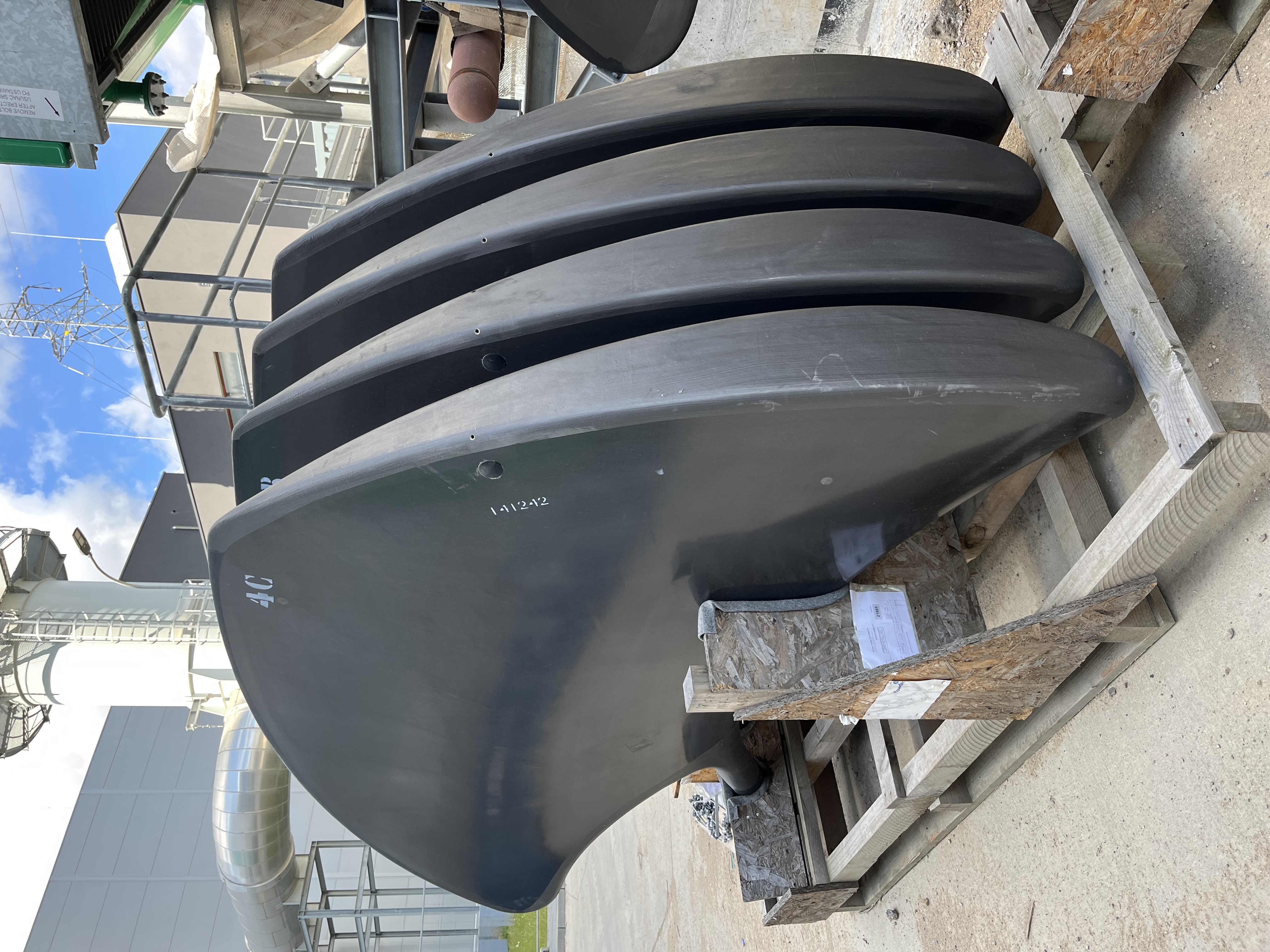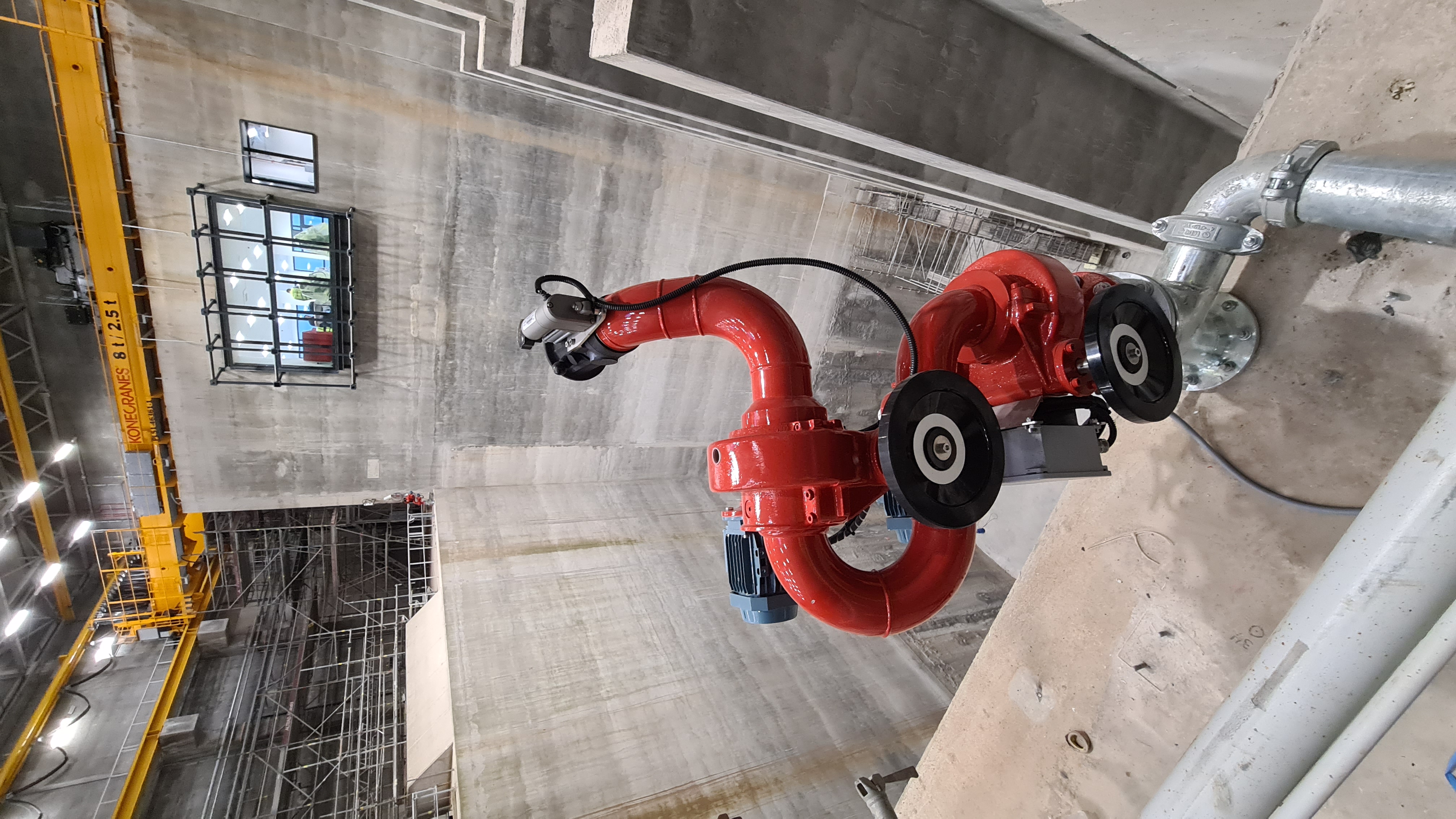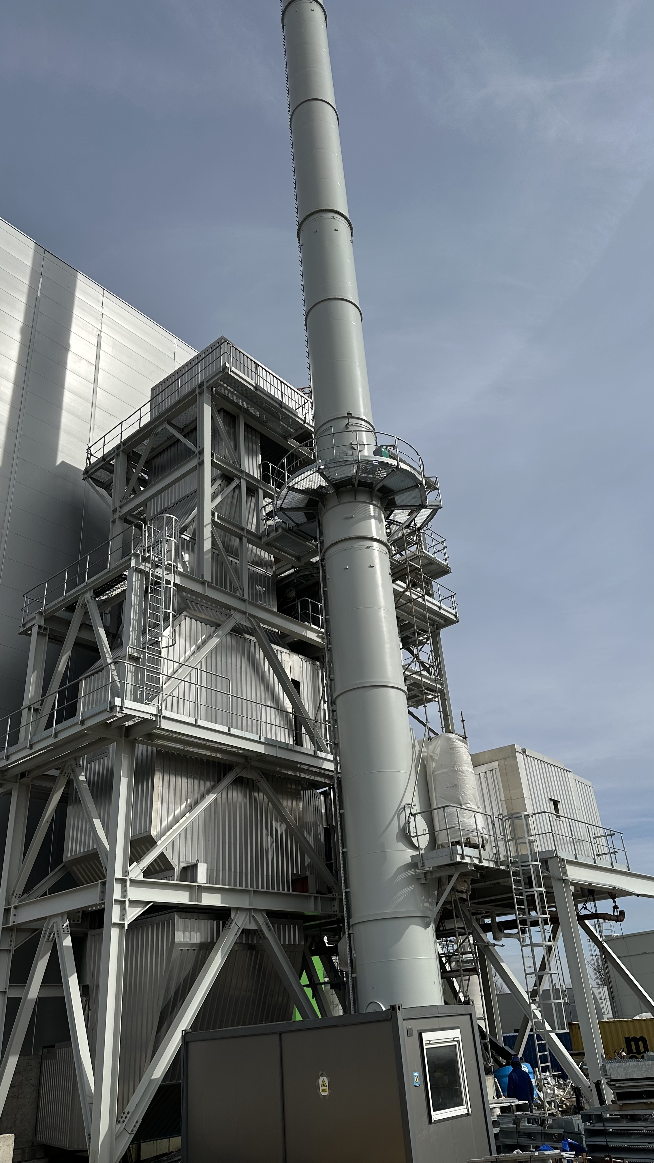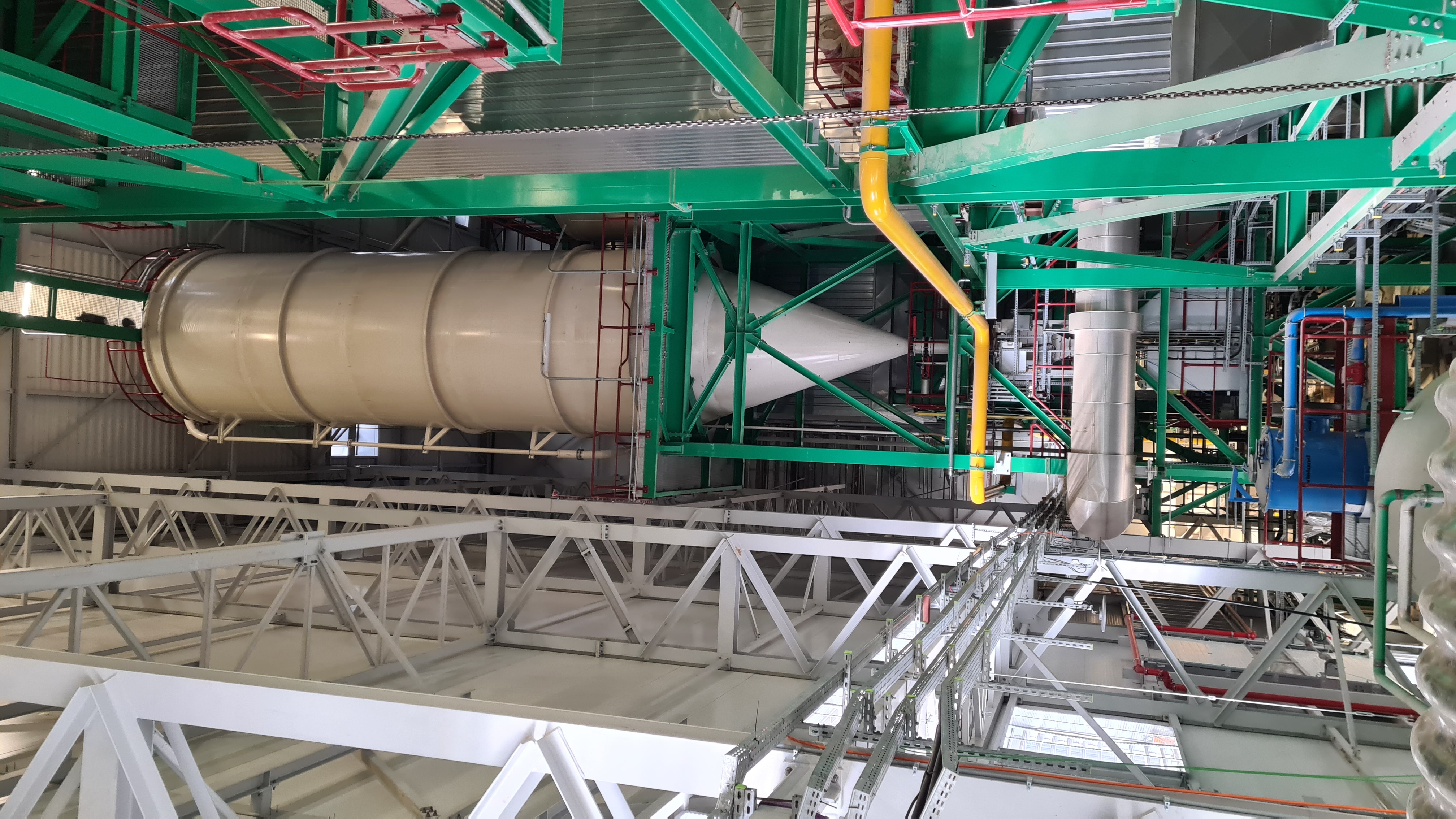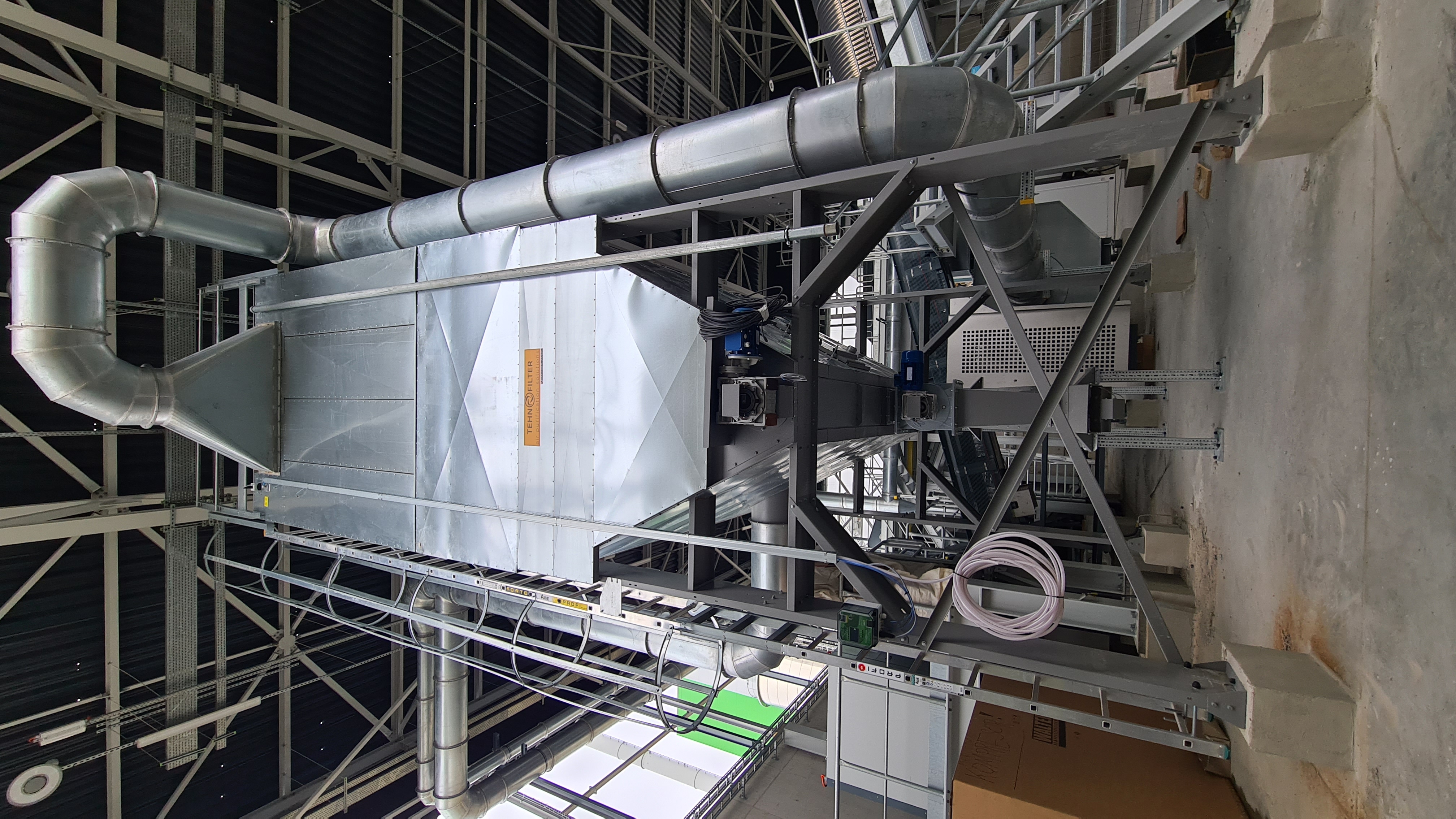 Widok na element części technologicznej zainstalowanej w kotłowni, a dokładnie, a dokładnie silos będący częścią systemu oczyszczania spalin.