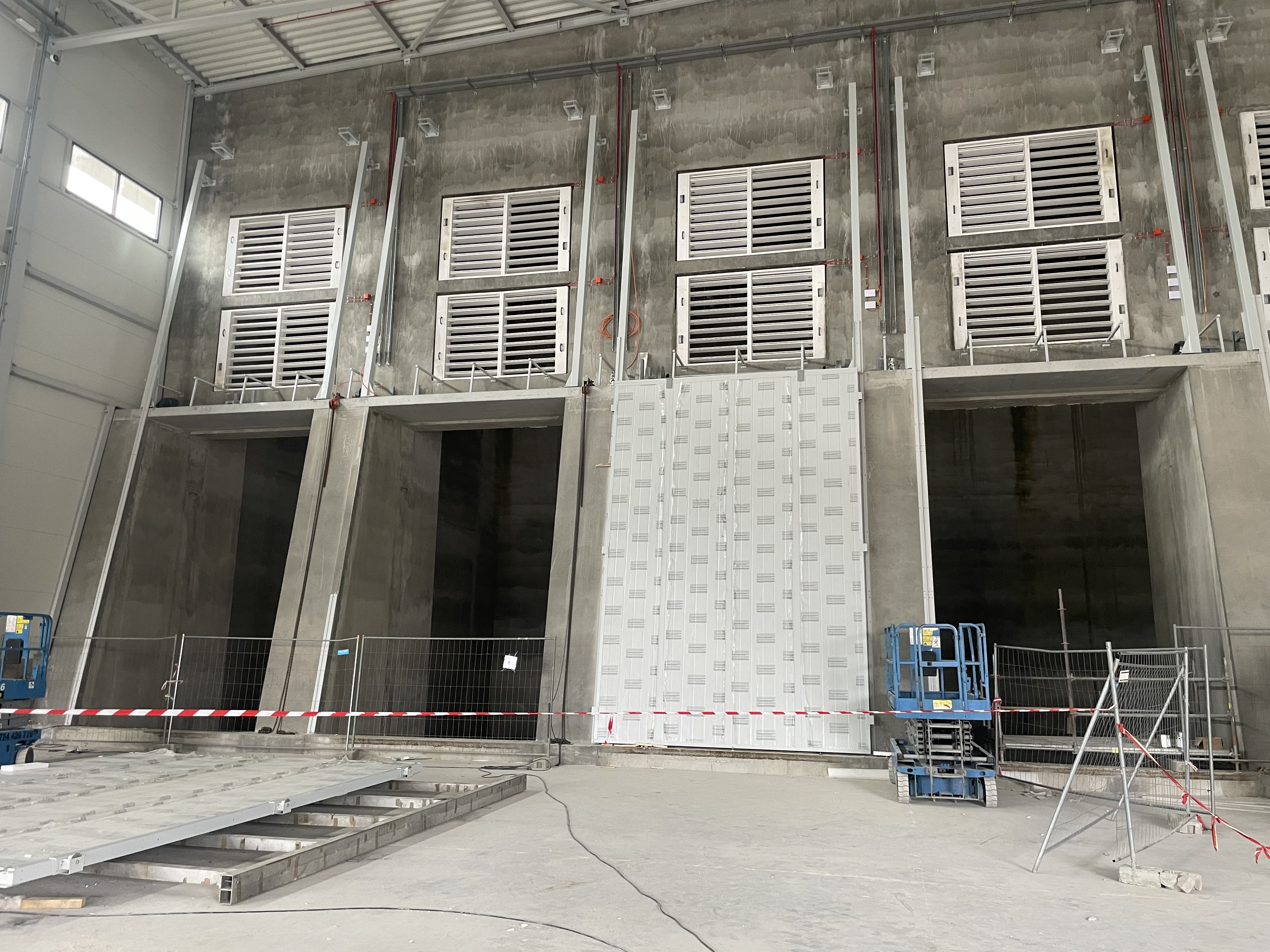 Hala dostaw wraz z bramami oddzielającymi wnętrze budynku od placu manewrowego. Widoczne bramy stanowią część dużego systemu które wraz z bramami do samego bunkra stanowią swoistą śluzę i przeciwdziałającą wydostawania się ewentualnych odorów poza przestrzeń wewnętrzną budynków, a co dalej za tym idzie do okolicznych terenów.