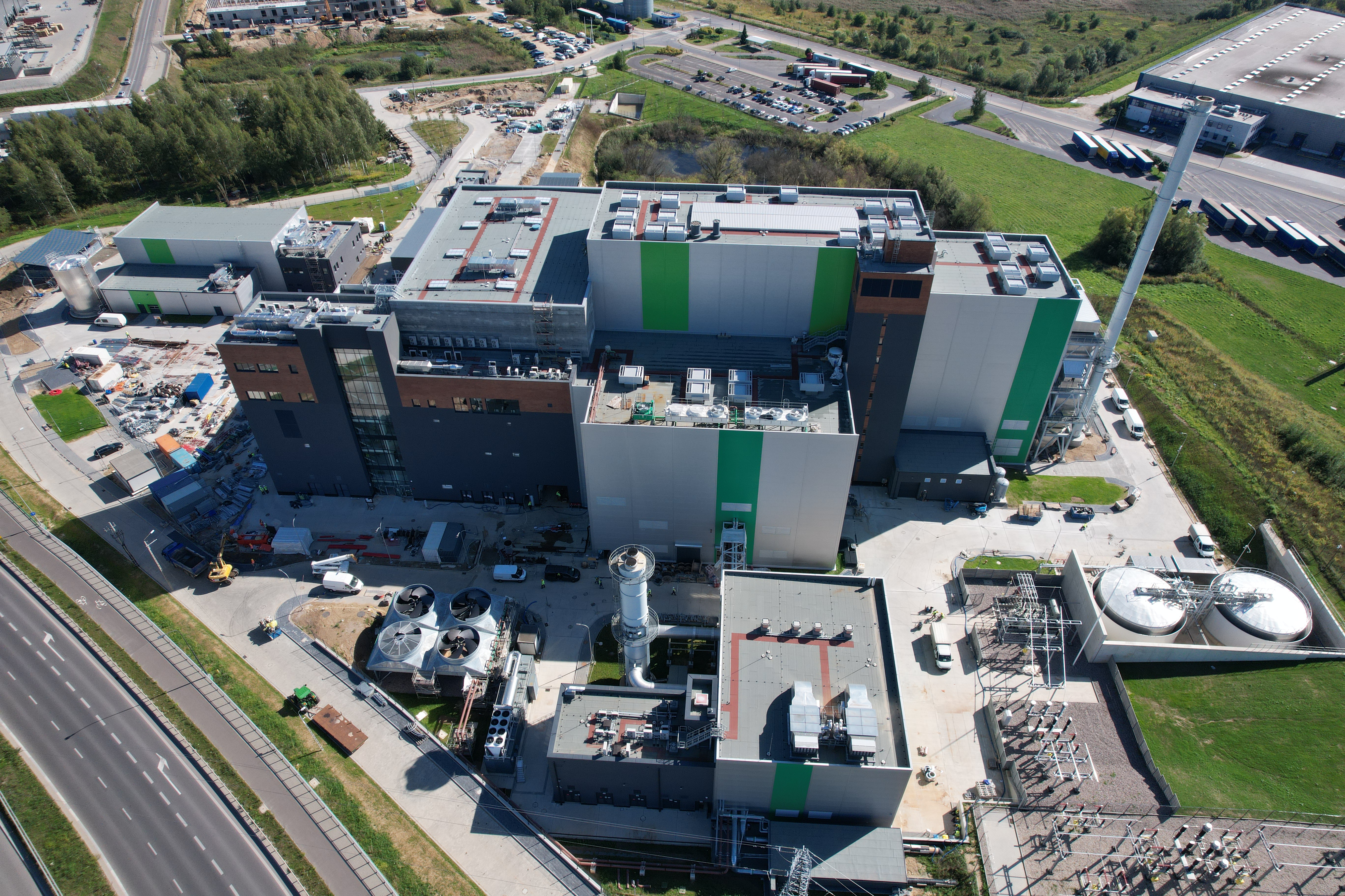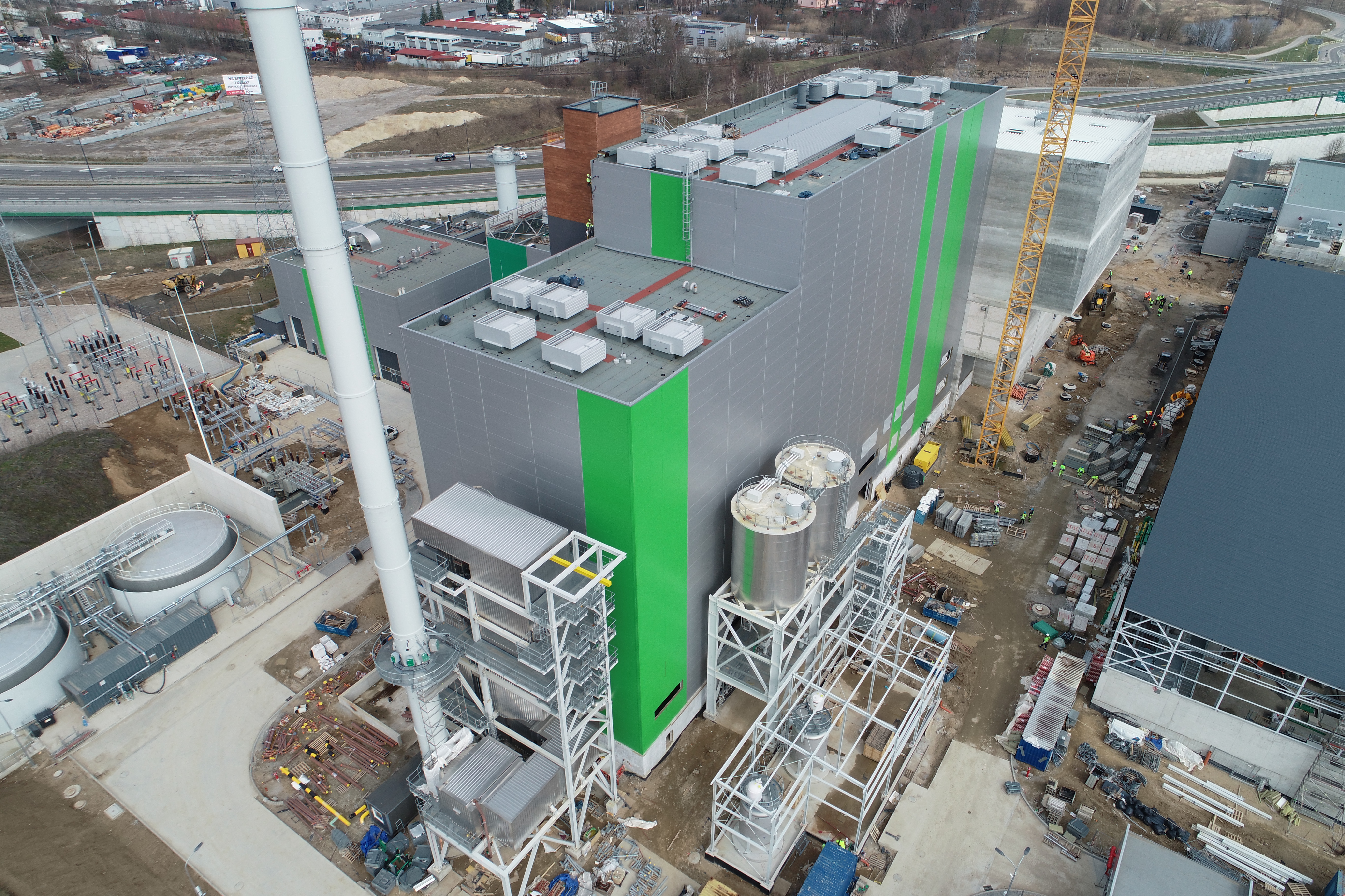 Kotłownia Szczytowa i Budowa ITPO – Na zdjęciu widok na budynek Kotłowni Szczytowej (niższe budynki na pierwszym planie) i budowę ITPO (budynki na drugim planie).